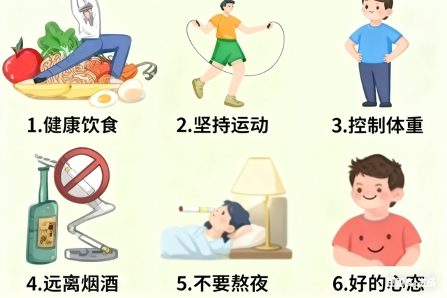 良好的生活习惯也可以帮助预防血栓的形成。应戒烟、戒酒、合理饮食、不熬夜、适量运动。可多进食富含粗纤维和维生素的食物,避免高盐、高糖、油腻食物,保持大便通畅等。
