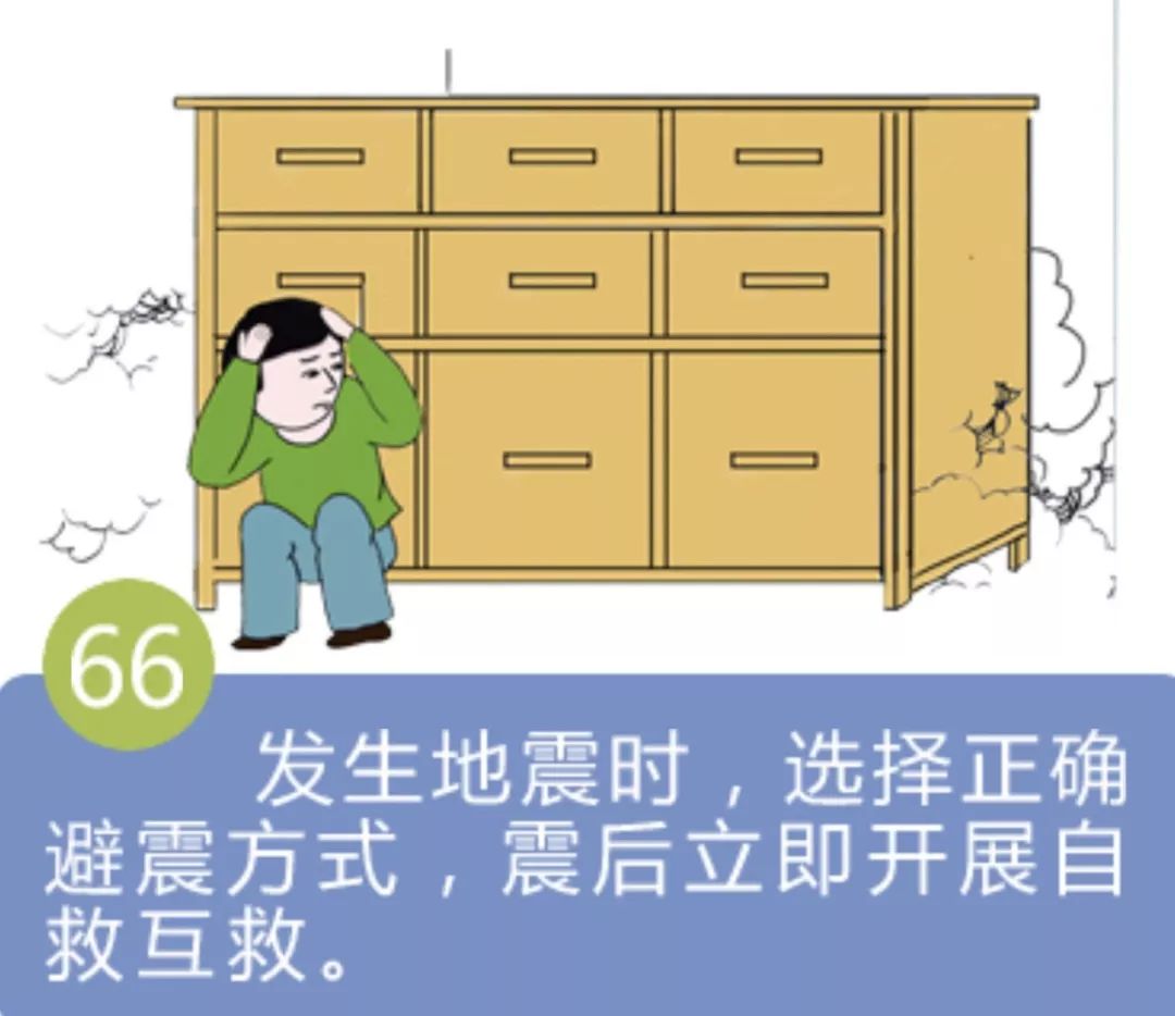66.发生地震时,选择正确避震方式,震后立即开展自救互救。