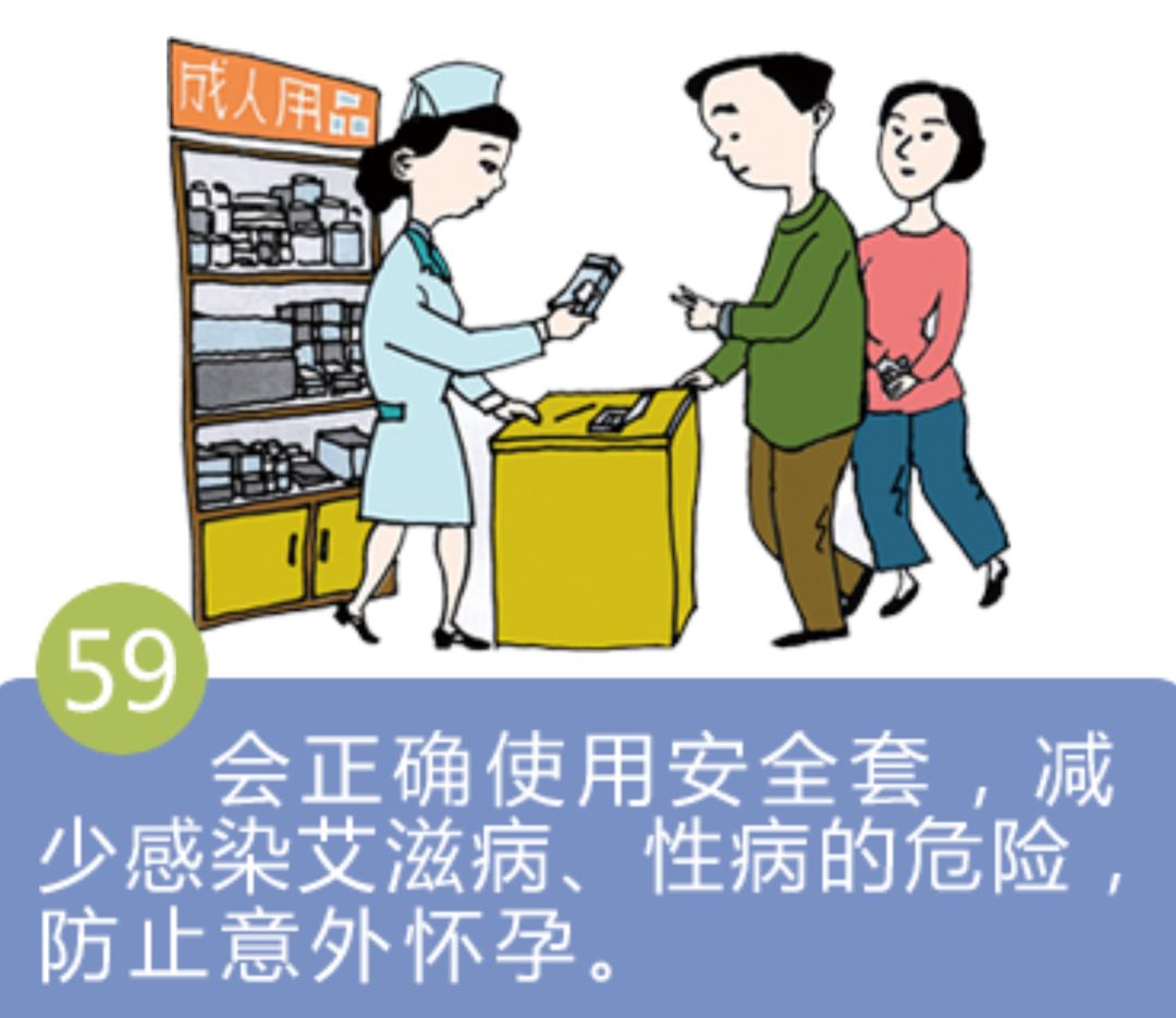 59.会正确使用安全套,减少感染艾滋病、性病的危险,防止意外怀孕。