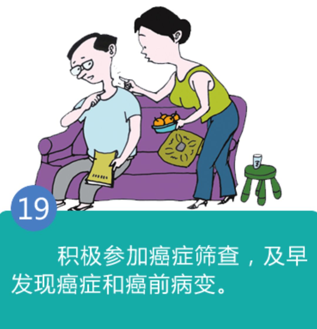 19.积极参加癌症筛查,及早发现癌症和癌前病变。
