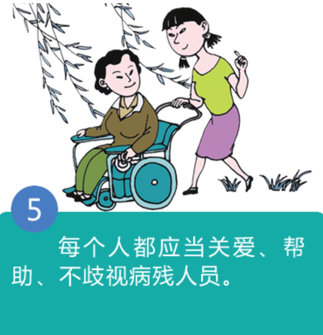 5.每个人都应当关爱、帮助、不歧视病残人员。