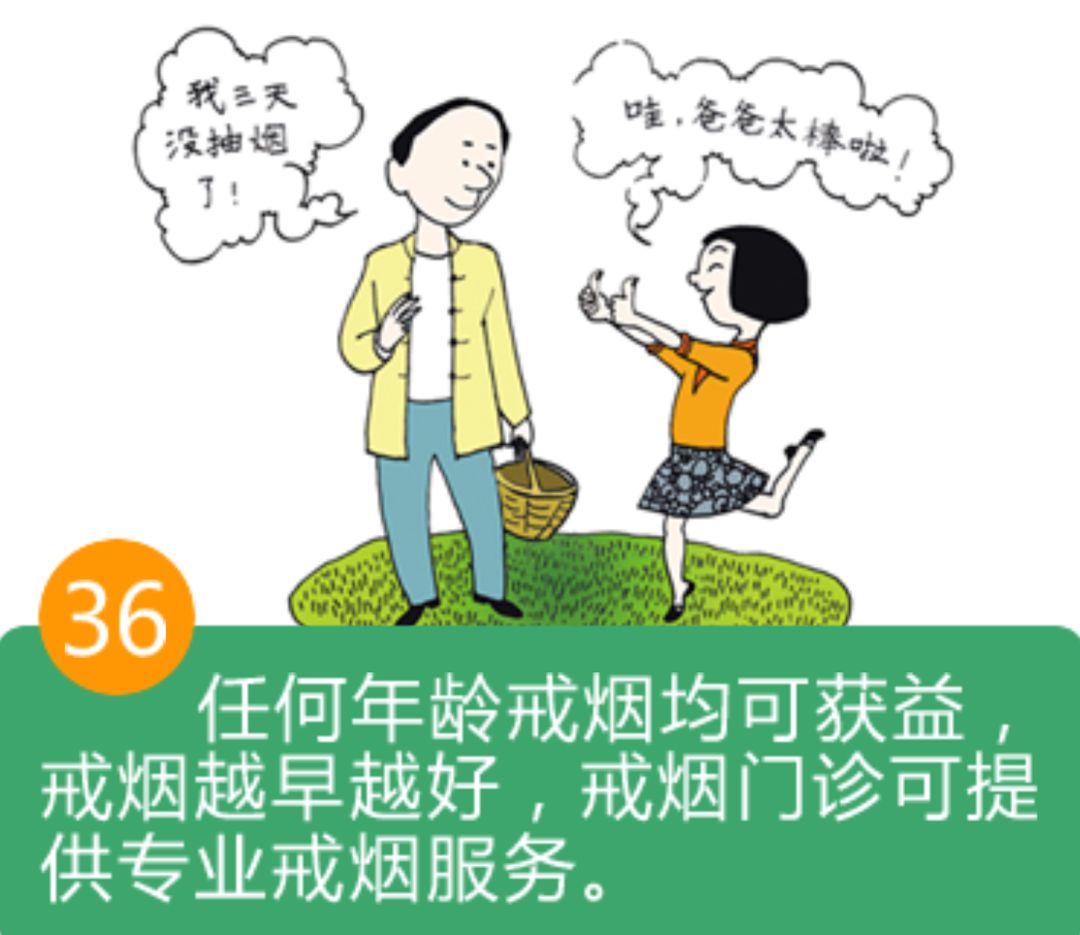 36.任何年龄戒烟均可获益,戒烟越早越好,戒烟门诊可提供专业戒烟服务。
