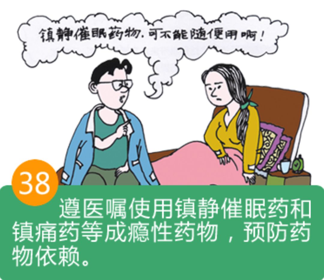 38.遵医嘱使用镇静催眠药和镇痛药等成瘾性药物,预防药物依赖。