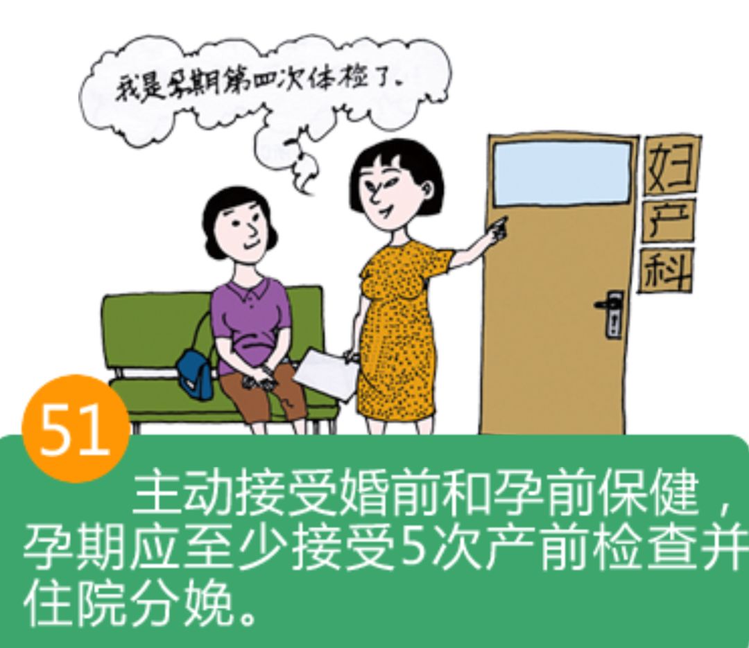 51.主动接受婚前和孕前保健,孕期应当至少接受5次产前检查并住院分娩。