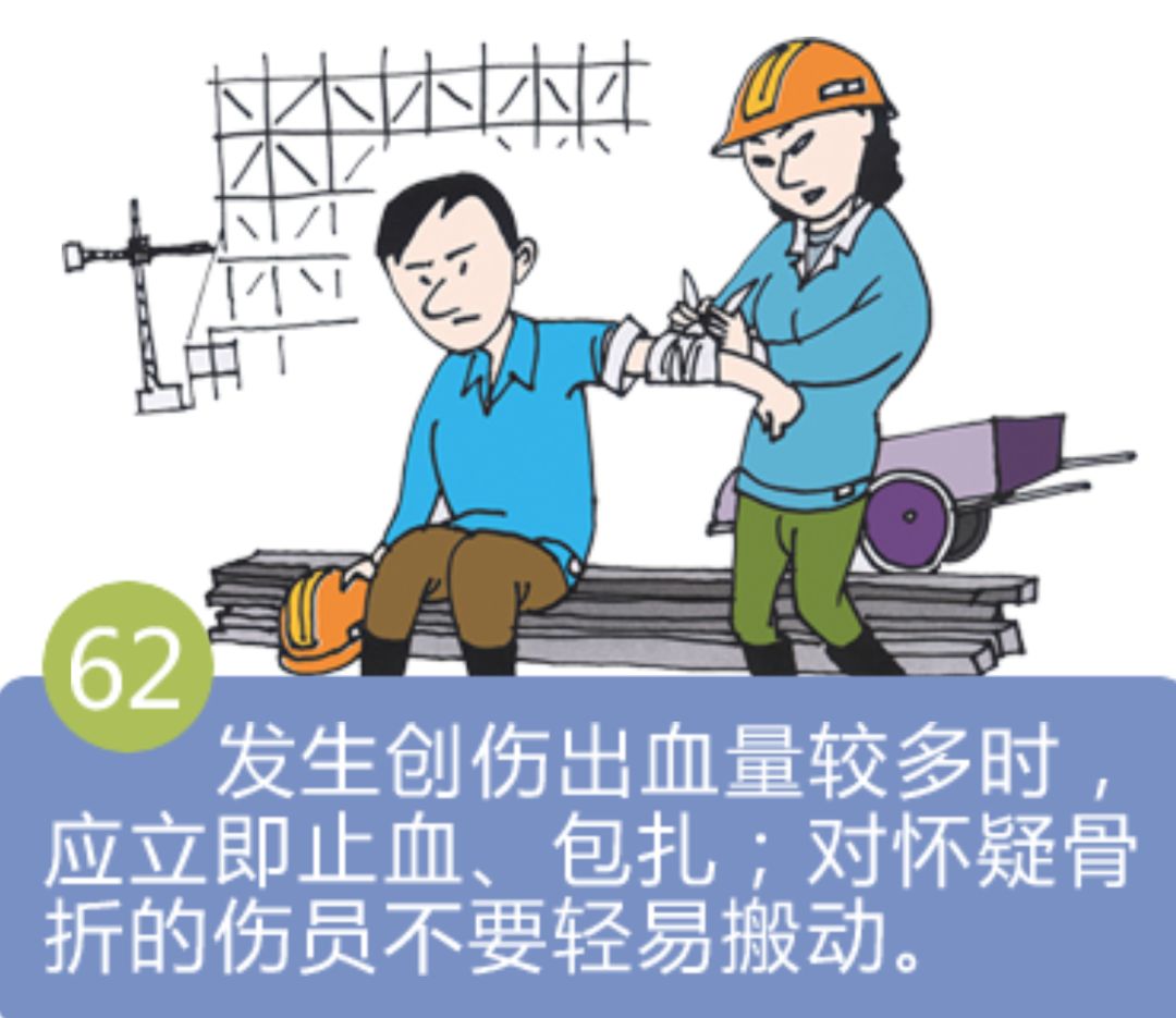 62.发生创伤出血量较多时,应当立即止血、包扎;对怀疑骨折的伤员不要轻易搬动。