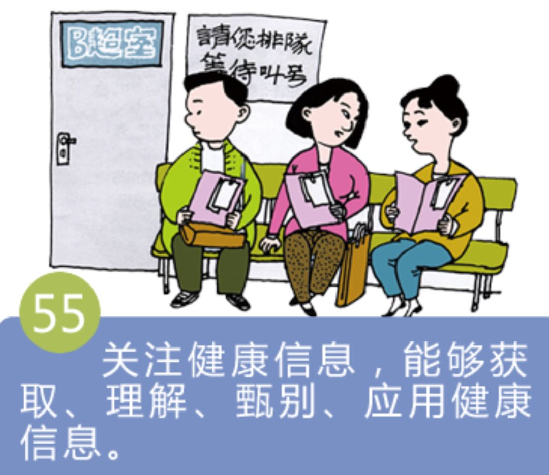 55.关注健康信息,能够获取、理解、甄别、应用健康信息。