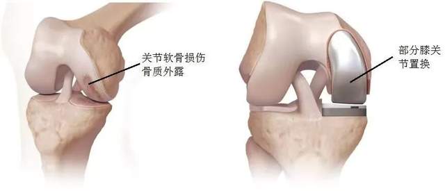 单髁置换手术,也叫做部分膝关节置换术,是保膝手术治疗的一种。这种手术方式的适应症主要是膝关节内侧或外侧间室退变,而髌骨关节本身磨损不严重或没什么问题。当关节软骨面有一部分破坏,但其他部位的软骨面还保持相对完整时,可以选择单髁置换手术。通俗易懂地讲,单髁置换手术是表面置换手术,类似于“补车胎”,可理解为将表面磨坏的骨头和软骨打掉以后,用生物材料粘上代替软骨的金属套。若发生骨关节炎仅局限于内侧或外侧间室,可以通过膝关节内侧或外侧单髁置换术(UKA)解决问题,即只替换有磨损的关节间室部分;还像“补牙”一样,针对有破洞的地方进行填补,而不是把整个牙拔掉后再镶牙。