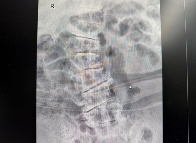 全麻后,在C臂引导下将穿刺针精准送达病变椎间盘。