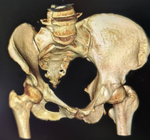 影像中心团队立即启动常规三维重建流程,快速生成了胸廓及腰椎的立体模型。通过多角度旋转观察,所有骨折部位、移位方向及关节脱位情况得以清晰、直观地呈现,犹如一幅立体的“伤情地图”。这份三维报告为骨科医生制定精准的微创内固定手术方案提供了至关重要的依据,有效避免了术中探查的盲目性,助力患者获得了良好的术后恢复。
