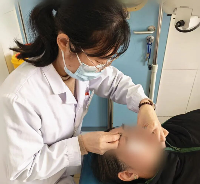 在充分告知并征得患者及家属同意后,李春瑛医生为李阿姨施行了泪道探通术。她使用精细的泪道探针,轻柔地插入泪道,探查并扩张阻塞部位,重建泪液正常排出通道。