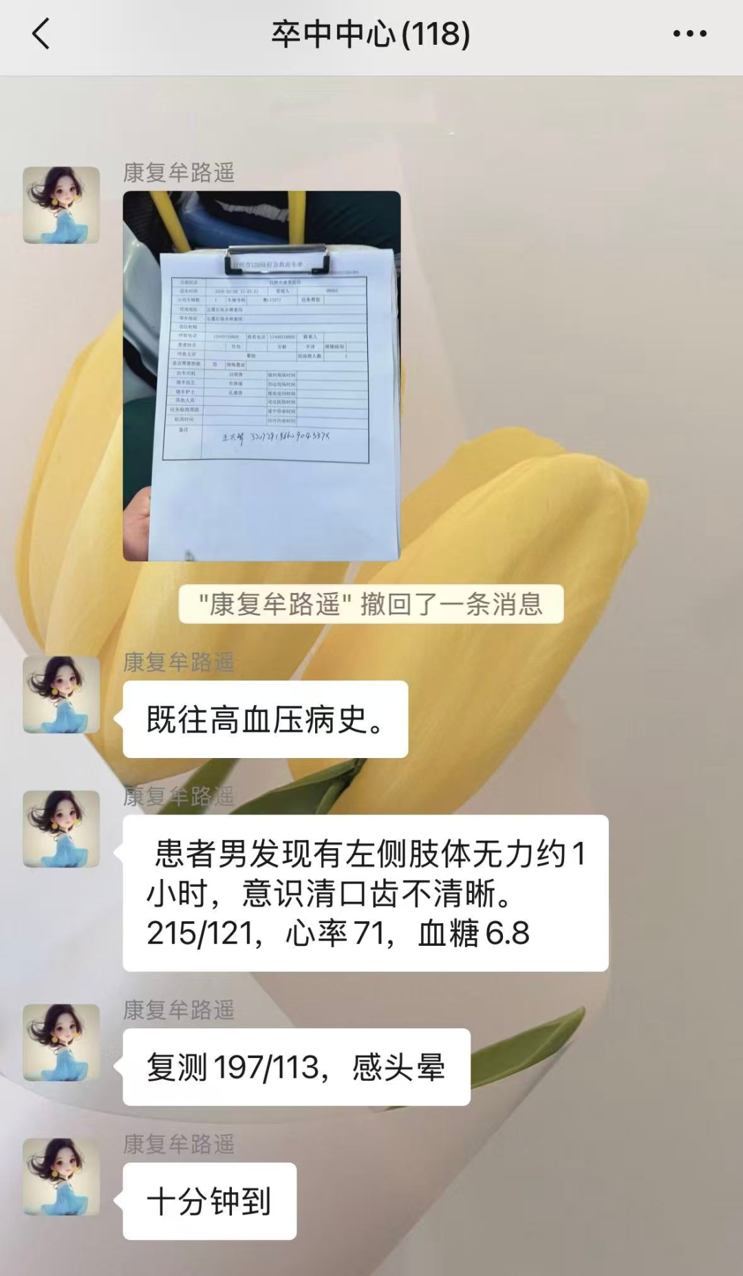 120院前急救组到达现场后,迅速评估患者情况。意识到这可能是一场脑卒中的紧急战役,急救人员第一时间将患者信息上传至医院卒中中心工作群。这条信息如同一道无声的集结令,医院内部的应急机制瞬间激活。