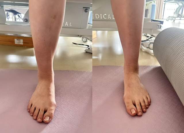 受长年穿高跟鞋与久站工作影响,37岁李女士(化名)的双脚不堪重负——双侧拇趾呈现外翻畸形,关节红肿疼痛。穿鞋挤压不适,行走距离稍长便痛感加重,严重影响日常生活与出行。