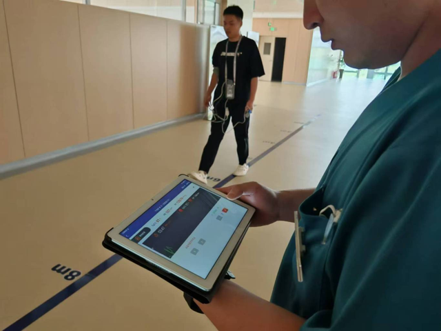 要求患者在平直走廊里尽可能快地行走,测定6min的步行距离。询问患者疲劳程度和气促程度,将治疗结果发送系统生成评估结果,并结合患者在运动过程中,治疗师根据系统生成的评估结论,制定患者运动处方的制定(其中包括,运动心率的把控,运动强度的制定),可以达到患者训练效果的最佳值。